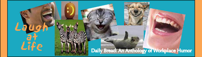 Daily Bread: The Anthology of Workplace Humor We’ve come to the conclusion recently that twenty-first century humans have become entirely too serioso. We just don’t laugh enough. What was once a quirky, avant garde indie film, Koyaanisqatsi has become a way of life. Too much bad news and fear-based commentary have made us feel guilty for enjoying ourselves. Sure, we pass along the occasional lame e-mail joke, but deep down what we really long for is an over-the-top, tears-down-the-face, snot-snorking, wet-your-pants kind of laugh fest. Now that would make us feel good. Not to mention we’d all like each other more and we’d get along better. We’d also be far more attractive and desirable. And there would be less war. Definitely less war. You can’t wage war and laugh at the same time.